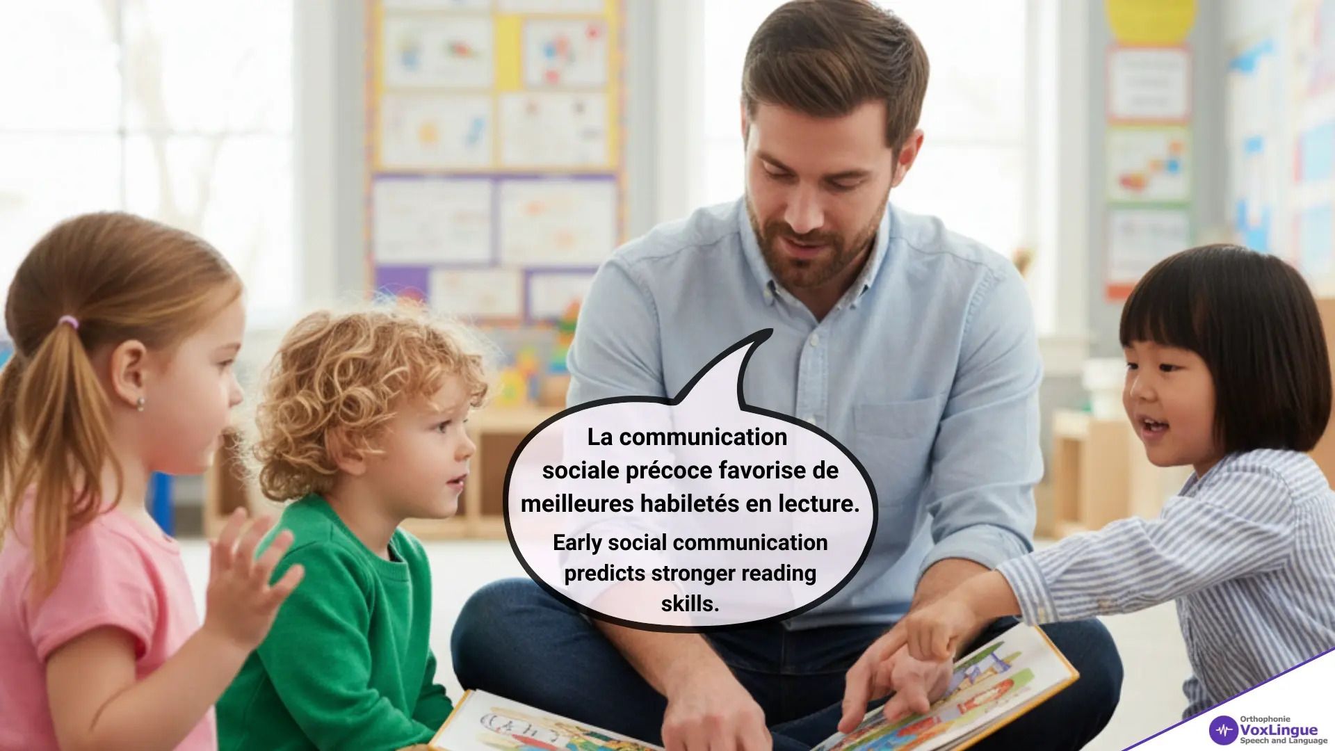 Saviez-vous que les habiletés de communication sociale développées dès la petite enfance prédisent fortement la compréhension en lecture plus tard? Les recherches en développement de l’enfant montrent que les enfants qui pratiquent des habiletés pragmatiques comme l’alternance des tours de parole, la demande de clarification et la participation aux discussions de groupe à la maternelle réussissent beaucoup mieux les tâches de lecture lorsqu’ils atteignent la troisième année du primaire. Une étude publiée dans le Journal of Speech, Language, and Hearing Research a démontré que la compétence pragmatique dans les premières années était liée non seulement à l’enrichissement du vocabulaire mais aussi à la capacité de comprendre et d’interpréter des textes écrits par la suite.