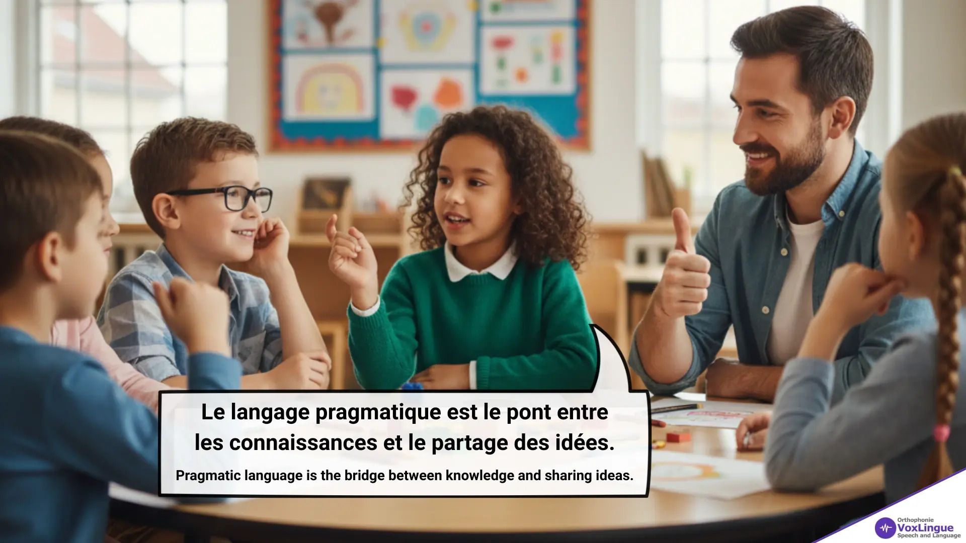 Lorsque l’on pense au langage, on imagine souvent le vocabulaire ou la capacité à construire des phrases. Pourtant, l’un des meilleurs indicateurs de réussite scolaire n’est pas seulement ce qu’un enfant peut dire mais la façon dont il utilise le langage dans les interactions sociales. Cet ensemble de compétences est appelé langage pragmatique et il comprend toutes les habiletés nécessaires pour communiquer efficacement avec les autres. Le langage pragmatique inclut l’alternance des tours de parole dans une conversation, la capacité à poser des questions au bon moment, la compréhension des règles de la classe ainsi que l’adaptation du discours en fonction du contexte.