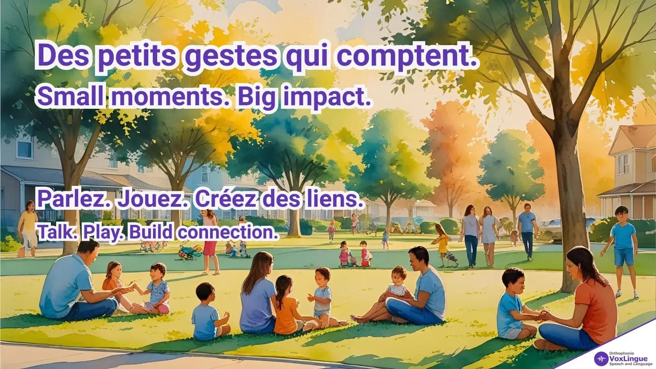 Vous pouvez également nous aider en partageant cette infolettre avec un proche, un collègue ou un parent de votre entourage qui se pose des questions sur le développement langagier de son enfant. Beaucoup de familles ignorent qu’il est possible de consulter dès le plus jeune âge, ou que l’orthophonie joue un rôle central dans la communication sociale et la confiance en soi, et pas seulement dans la prononciation. Si vous pensez à quelqu’un, invitez-le à consulter notre site voxlingue.com pour en apprendre davantage, explorer nos services ou prendre rendez-vous.